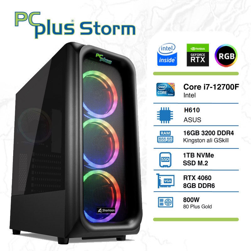 PCPLUS Storm i7-12700F 16GB 1TB NVMe SSD GeForce RTX 4060 DDR6 8GB RGB gaming namizni računalnik