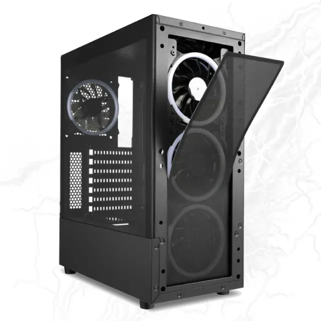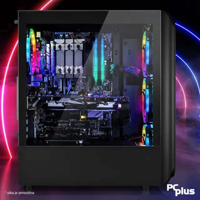 Kaj pa prostor za shranjevanje? Ne skrbite, naš računalnik ima ohišje Sharkoon ATX TK5M RGB, ki zagotavlja dovolj prostora in zaščito vaše opreme. Poleg tega ima tudi 16 GB RAM-a Kingston 3200 DDR4, ki odlično deluje z Intel Core procesorjem za hitrejše odzive in brezhibno delovanje.