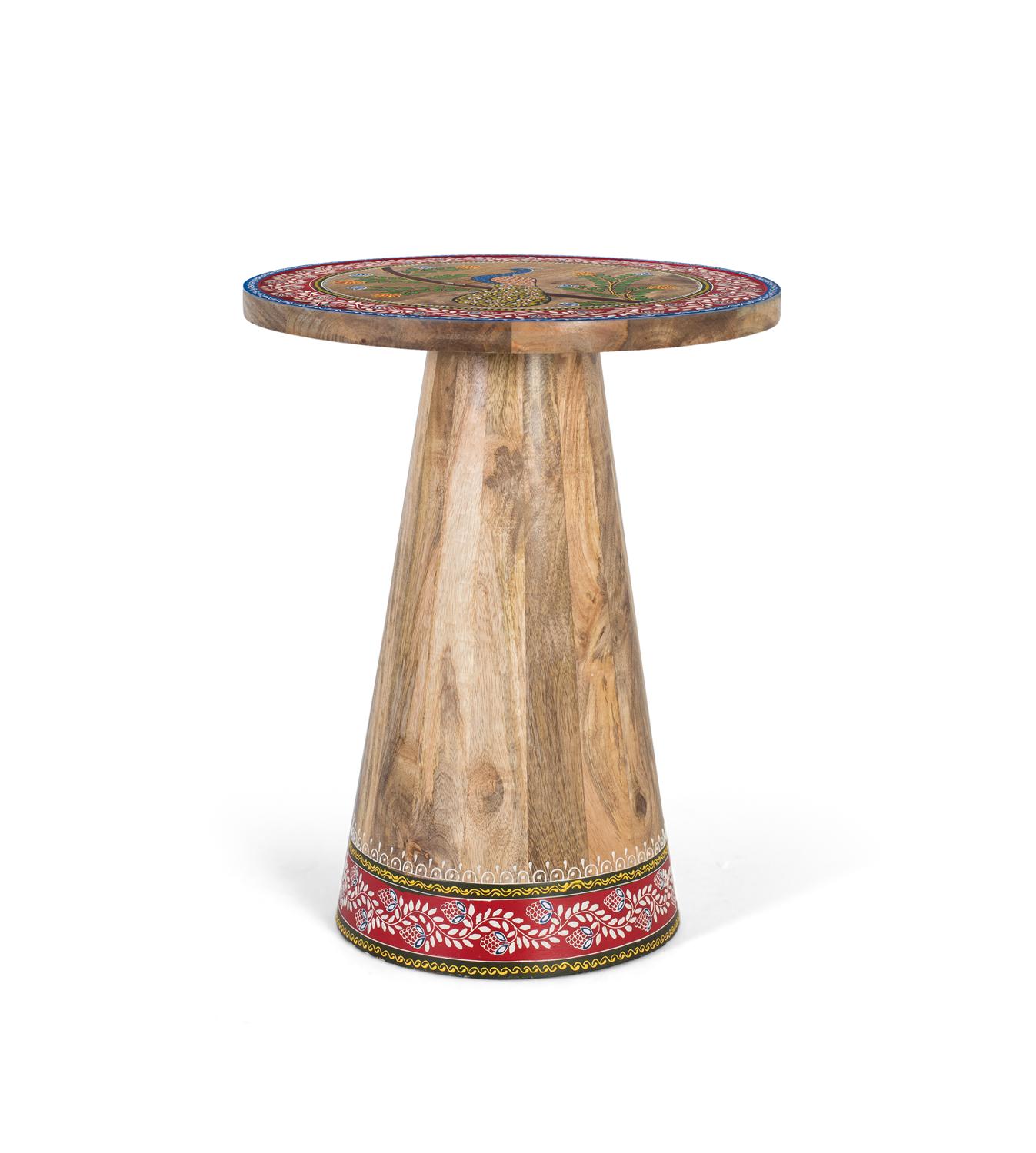 Stranska mizica iz mangovega lesa z ročno poslikanimi detajli