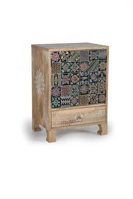 Stranska mizica iz ročno poslikanega mangovega lesa