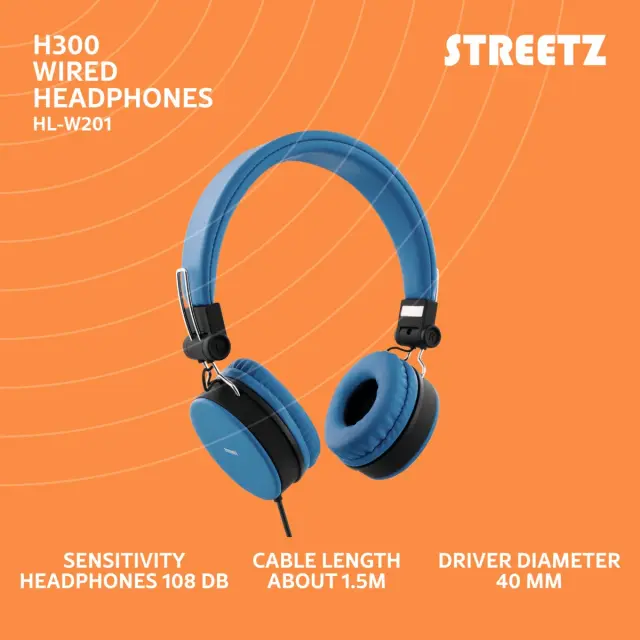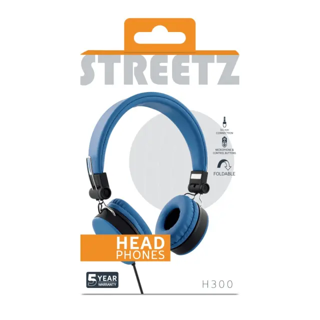 STREETZ H300 Slušalice s mikrofonom, sklopive, 3,5 mm priključak, 1 tipka daljinski, 1,5 m, plave