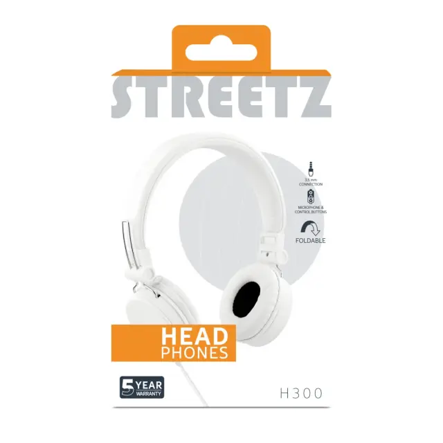 STREETZ H300 slušalke z mikrofonom, zložljive, 3,5 mm priključek, 1 tipka daljinski upravljalnik, 1,5 m, bele