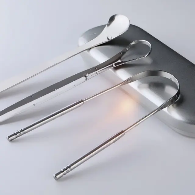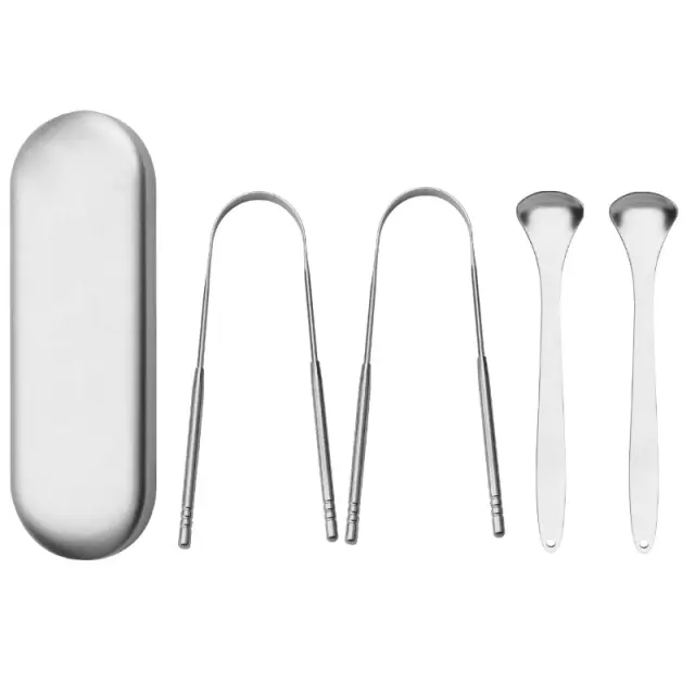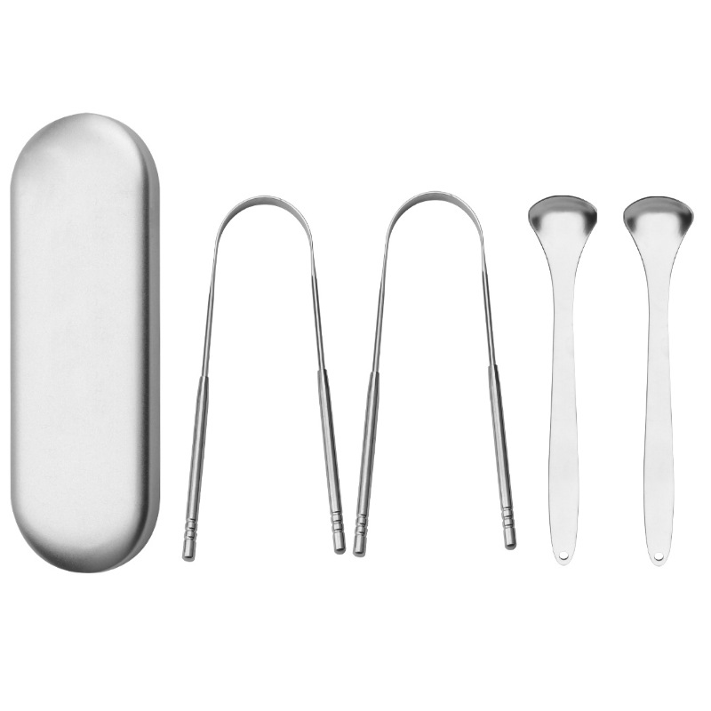 Strgalo za jezik iz nerjavečega jekla, 4 paketi Silver