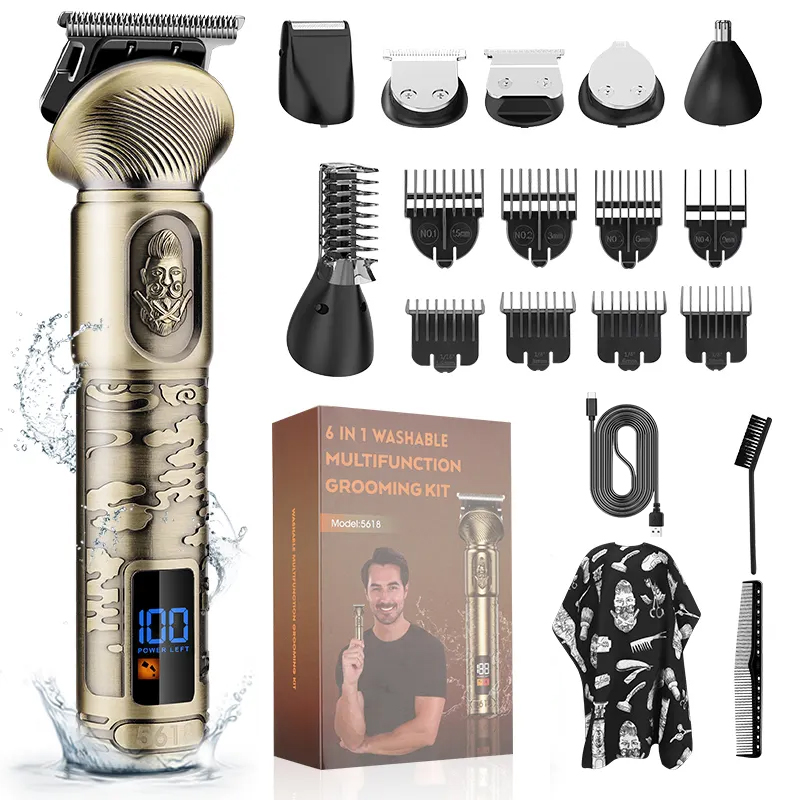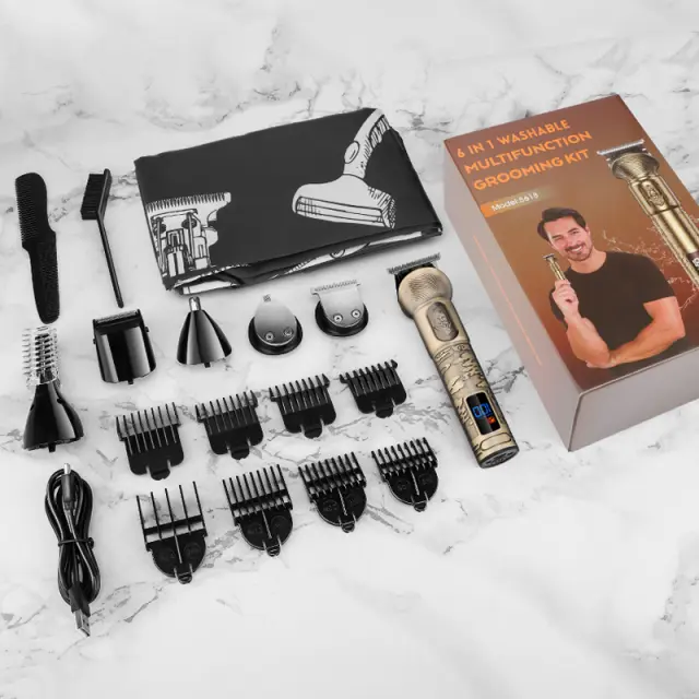 Obsežen komplet za nego las in brade : Paket vključuje različne zamenljive šobe za različne potrebe - prirezovalna glava za dlake po telesu, prirezovalna glava za nosne dlake, prirezovalna glava v obliki črke U, prirezovalna glava za graviranje in brivna glava. Za doseganje želene dolžine las komplet vsebuje tudi štiri različne distančne glavnike (3 mm, 6 mm, 9 mm in 12 mm).