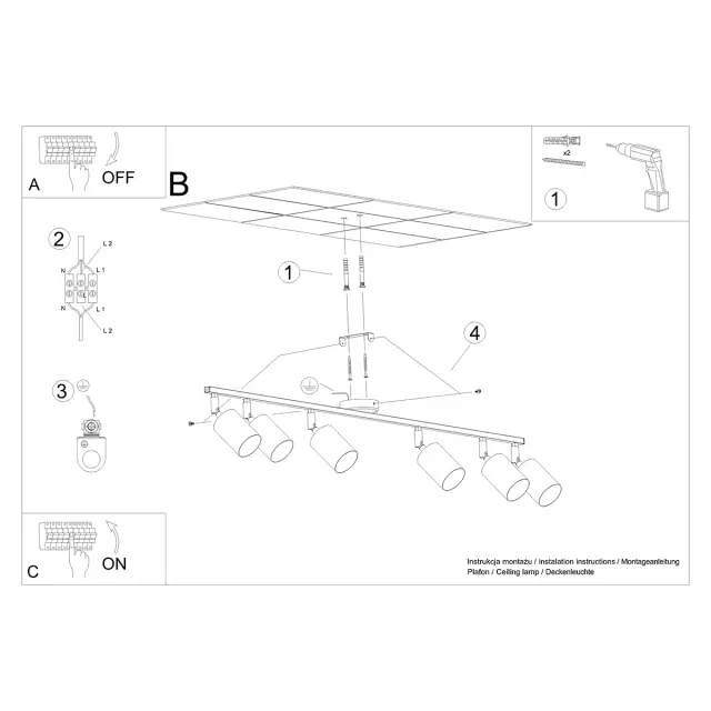 Stropna svetilka LEMMI 6L črna