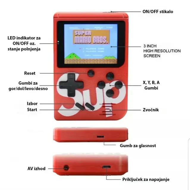 Obudite svoje otroške dni ter ponovno zaigrajte legendarno igro Super Mario, F1 Race, Spider Man, Tetris, Ninja ter še ostalih nostalgičnih 395 iger. Odlično darilo za vaše najmlajše ter ljubitelje videoiger, saj ne potrebujete mobilnega telefona.