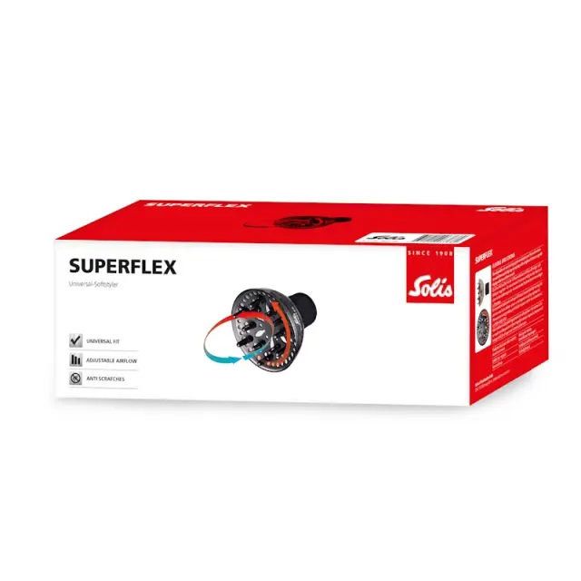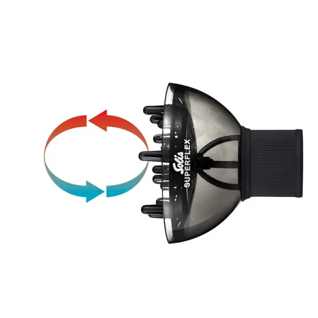 Difuzor Softstyler Superflex je idealen za sušenje kodrastih las. Gre za izjemno nežno metodo, ki vam ne bo opekla las. Podaljšek je primeren za vse sušilnike za lase Solis (razen Home & Away).