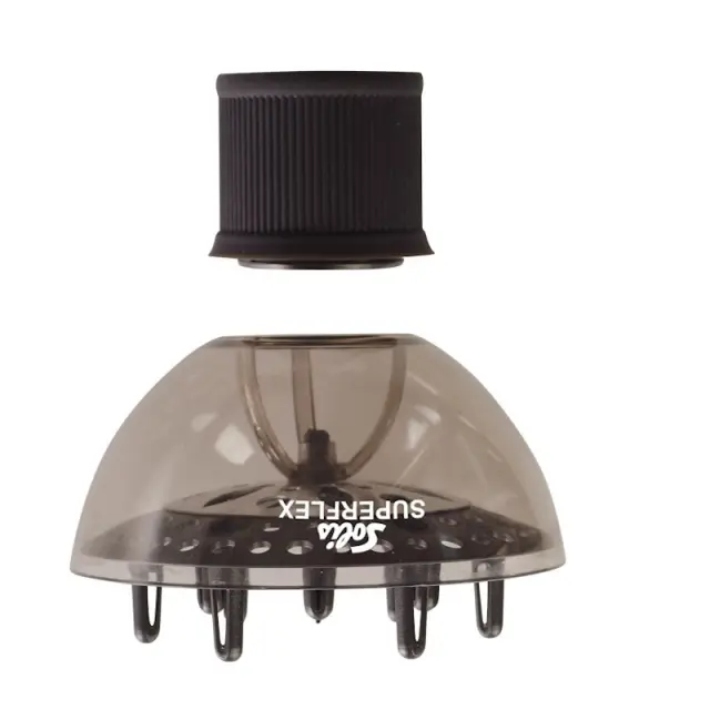 Zahvaljujoč domiselnim mehkim gumijastim elementom znotraj snemljive cevi, lahko difuzor Superflex pritrdite na skoraj vse sušilnike za lase, praskam na ohišju pa se zanesljivo izognete.