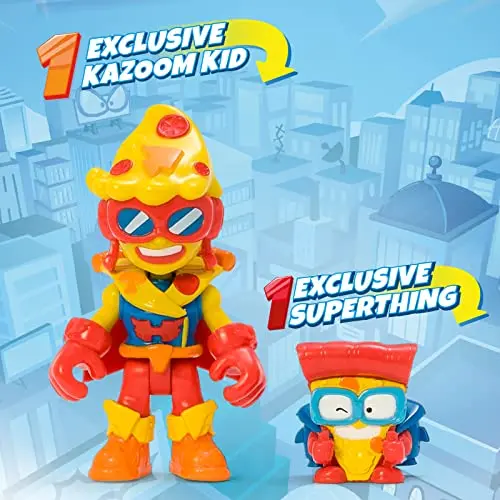 SUPERTHINGS Pizzacopter – Helikopter SuperThings. Z zaganjalnikom plošč za pico. Vključuje 1 ekskluzivni Kazoom Kid in 1 ekskluzivno SuperThing POPELJITE V NEBO MESTA KABOOM! – Nova patrulja varuje mesto od zgoraj: to je SuperSlice s Pizzacopterjem! Avantura zagotovljena! BRANI JUNAKE – Če te nekdo potrebuje, da ga braniš pred zlobneži, ga lahko pobereš tako, da nameriš in streljaš. Naložite diske za pico v isto vozilo, pripravljeni za drugič, in pustite, da se avantura nadaljuje! EKSKLUZIVNA FIGURICA – Vsebuje 1 ekskluzivnega Kazoom Kida in 1 ekskluzivnega junaka SuperThing. ODLIČNA IGRALNOST – Vozilo je odlično igralno, z več dejanji, ki razvnemajo domišljijo majhnih otrok. Postavite svojega Kazoom Kida ali SuperThing v novi helikopter SuperThings ZABAVNA, ENKRATNA PUSTOLOVŠČINA – SuperThings so vsakdanji predmeti, ki so oživeli. Zdaj imajo nekaj novih spremljevalcev – Kazoom Kids! To so otroci, ki so se z močjo Kazooma spremenili v junake ali zlikovce in vsi živijo skupaj v mestu Kaboom. Odkrijte ali spremljajte dogodivščine teh akcijskih figur na kanalu Magic Box na YouTubu (na voljo v španščini in drugih jezikih)