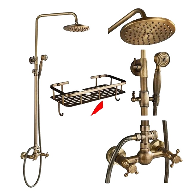 Súprava sprchovej batérie, dažďová sprchová hlavica, otočné dvojité ovládanie - Polica