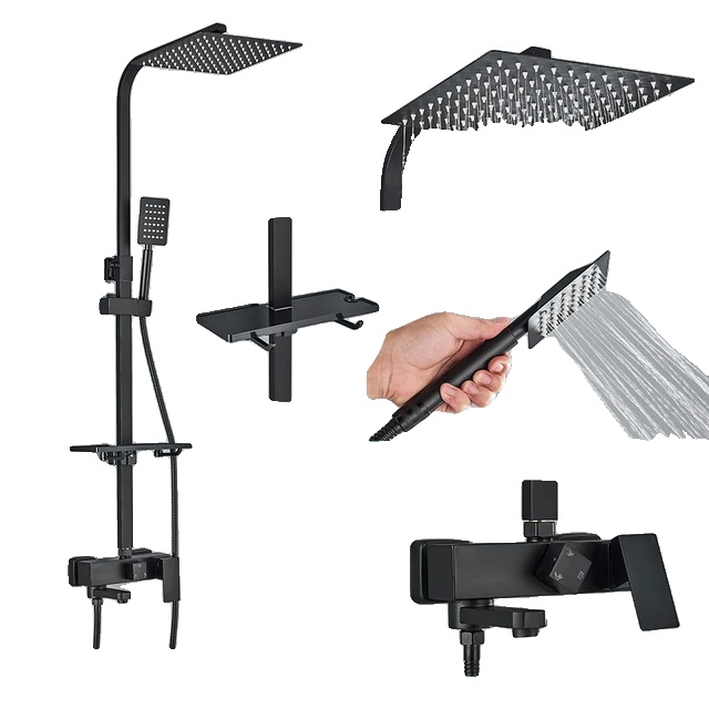 • Pevná mosadzná konštrukcia: Vyrobené z odolného mosadzného materiálu, tento systém do kúpeľne je navrhnutý tak, aby vydržal a odolal každodennému používaniu. Priložený regál pridáva úložný priestor pre vaše sprchové potreby.