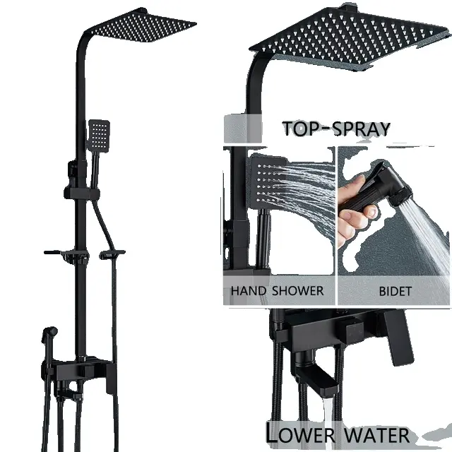 Súprava sprchovej batérie, nástenná, vaňa s dažďovou vodou - 4-cestný 12palcový B