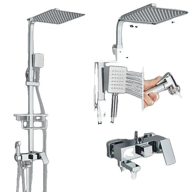 • Sprchový mixér na dažďovú vodu: Luxusná nástenná sprchová batéria so 4-funkčným sprchovým mixérom na dažďovú vodu pre dokonalý a osviežujúci zážitok z kúpeľa.