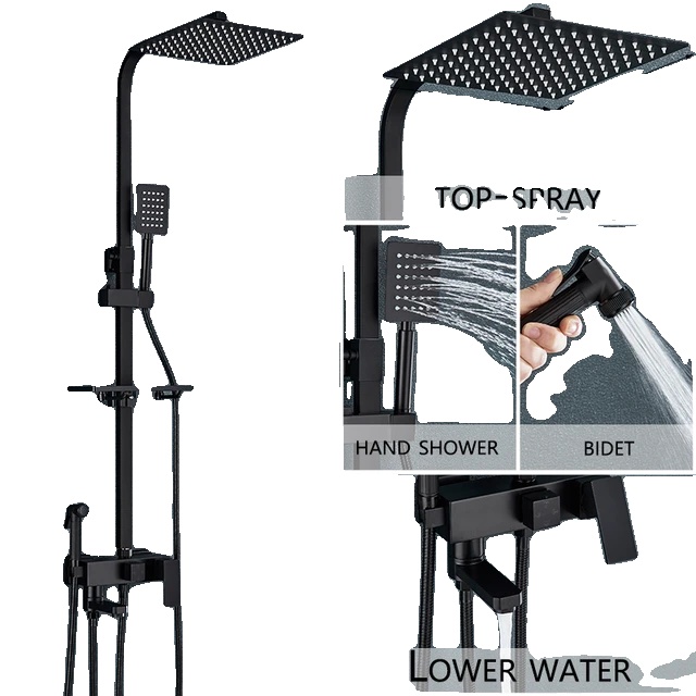 • Sprchový mixér na dažďovú vodu: Luxusná nástenná sprchová batéria so 4-funkčným sprchovým mixérom na dažďovú vodu pre dokonalý a osviežujúci zážitok z kúpeľa.