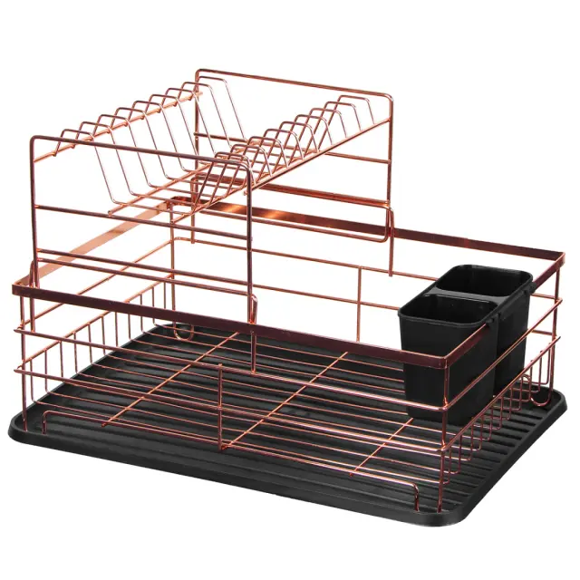 Eleganten fen v glamuroznem slogu v rožnato zlati barvi. Kombinacija s črnim pladnjem in odcejalnikom za jedilni pribor ustvari zanimiv učinek in ga loči od ostalih sušilnikov.