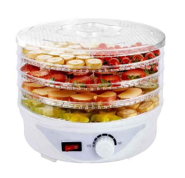 - Nastavljiv termostat 35-70oC - Stikalo za vklop / izklop - 4 pladnji - razmak med pladnji 25mm - Premer pladnjev: 24cm - ABS prozorno ohišje - Integriran ventilator - Za sušenje sadja, zelenjave - Moč: 250W - Napajanje: 220-240V, 50/60Hz - Garancija: 1 leto