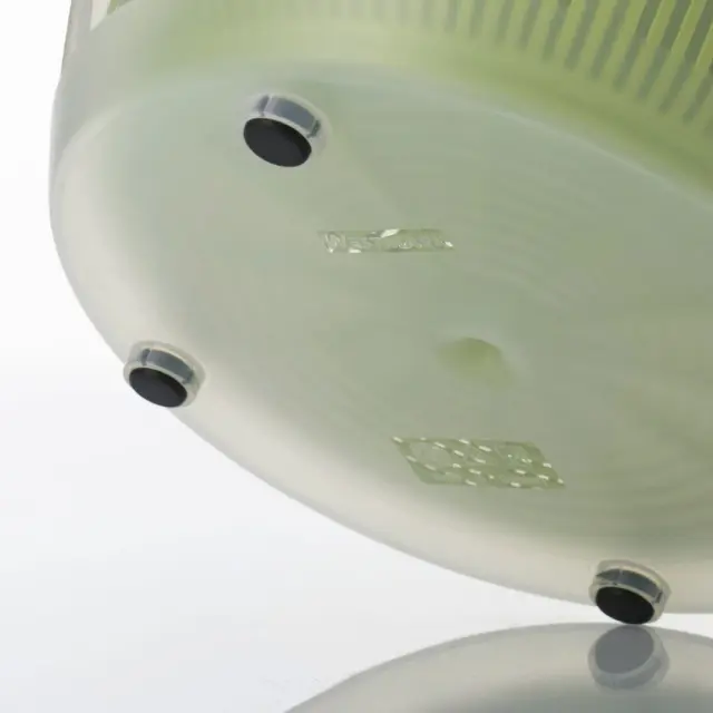 Sušilec za solato Fortuna s 5-litrsko kapaciteto je zanesljiv in trpežen pripomoček za pripravo sveže oprane solate. Njegov močan mehanizem in ergonomski gumb omogočata enostavno in hitro vrtenje, kar zagotavlja učinkovito ožemanje in sušenje solatnih listov. Voda, ki se nabira v spodnji posodi, se zahvaljujoč praktičnemu izlivu enostavno odlije. Sušilec je izdelan iz polipropilena (brez BPA) in je primeren za pomivanje v pomivalnem stroju. Štiri gumijaste nedrseče nogice omogočajo stabilno uporabo. S sušilcem boste brez težav oprali, osušili in shranili svežo zelenjavo. Lahko ga uporabite tudi brez cedila – kot samostojno posodo.