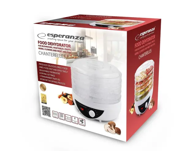 Sušenje izdelkov je zanesljiv in enostaven način za ohranjanje le-teh, okusa in vonja ter dragocenih hranilnih in vitalnih snovi. Tako lahko vse leto uživamo v okusu sadja, zelenjave ali gob brez konzervansov in drugih umetnih dodatkov. Ta naprava dlje časa ohranja okus in vonj vaših najljubših izdelkov. Je nepogrešljiv v vsaki moderni in zdravi kuhinji. Je z veliko močjo 250 W in vgrajenim ventilatorjem, ki omogoča hitro, natančno in enakomerno sušenje izdelkov. Zahvaljujoč zaščiti pred pregrevanjem je uporaba tega sušilnika hrane popolnoma varna.PRIDELA OKUSNO SUŠENO HRANO SUŠI HRANO HITRO IN UČINKOVITO