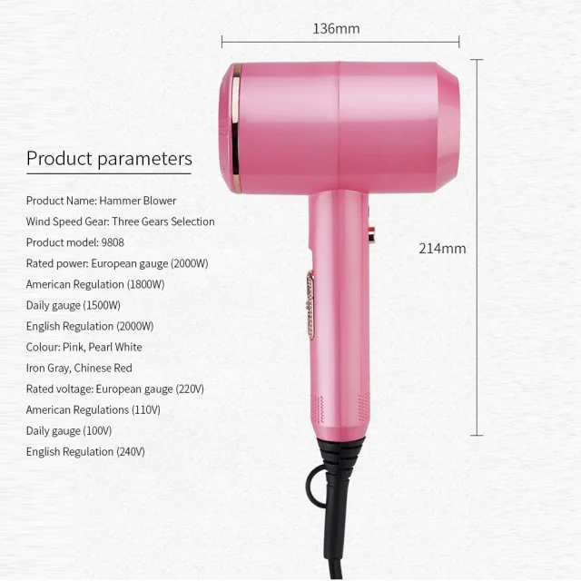 2 stopnji toplote in 5 hitrosti: Z 2 stopnjama toplote in 5 nastavljivimi hitrostmi se naš sušilnik za lase prilagaja vašim željam in tipu las. Ne glede na to, ali potrebujete nežen vetrič ali močan piš, ta sušilnik za lase ponuja prilagodljivost za doseganje popolnih rezultatov oblikovanja.