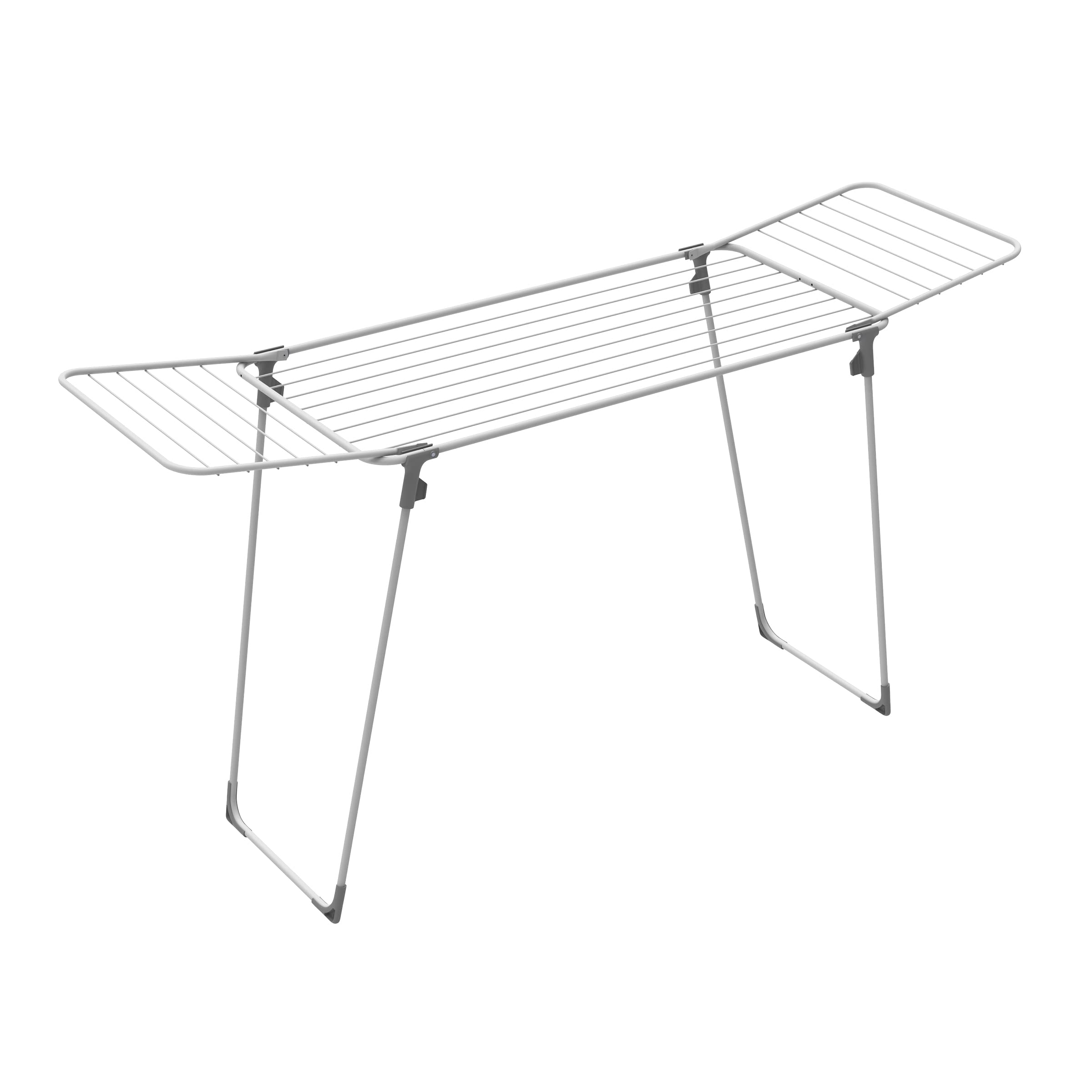 Patentirano inovativno sušilno stojalo s krili in konstrukcijo, ki ohranja noge in krila trdno pritrjene, ko je stojalo zloženo. Končno je rešen pogost problem: krila se med premikanjem ne zapirajo ali padajo, kar močno olajša rokovanje in poveča udobje pri uporabi.