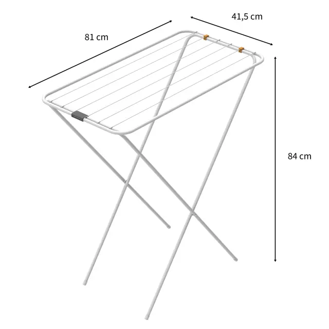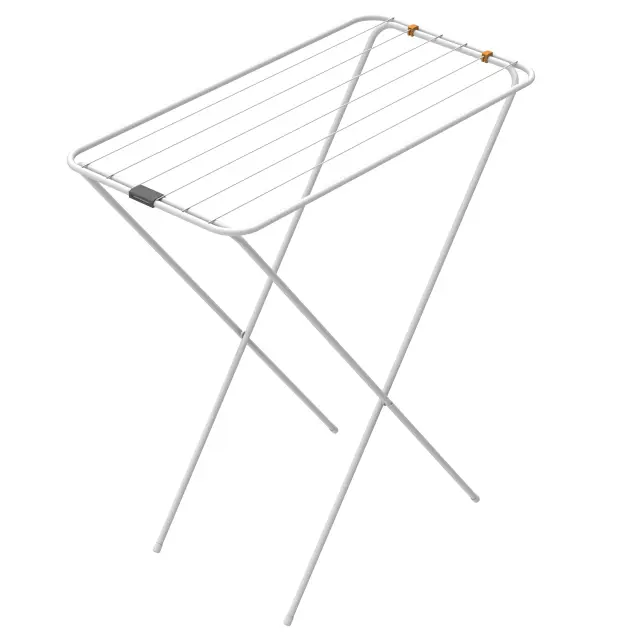 Praktično sušilno stojalo, zasnovano za izjemno enostavno odpiranje in zapiranje, kar zagotavlja udobno uporabo v vsakdanjem življenju. Njegova kompaktna konstrukcija omogoča, da zavzame zelo malo prostora, tako med uporabo kot v zloženem stanju, zato je odlična izbira za domove z omejenim prostorom. Posebej primerno je za sušenje na ravni površini, idealno za občutljiva oblačila, ki zahtevajo dodatno skrb.