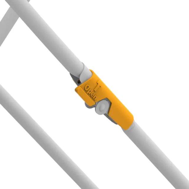 Zaradi patentirane konstrukcije so krila v zaprtem položaju blokirana, kar močno olajša rokovanje in shranjevanje, ko stojalo ni v uporabi.