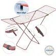 Sušilno stojalo s preklopnimi krili, zasnovano za veliko sušilno kapaciteto in praktično vsakodnevno uporabo. Krila zagotavljajo približno 18 m sušilne površine in jih je mogoče enostavno zložiti, ko niso potrebna, kar prihrani prostor. Patentirana konstrukcija vključuje zapiralni sistem, ki znatno poveča stabilnost med uporabo. Poleg tega vgrajeni mehanizem ohranja noge v popolnoma odprtem položaju, kar zagotavlja udobno in varno rokovanje. Prevleka površine ima protizdrsno teksturo, ki izboljša oprijem oblačil in preprečuje nenamerno drsenje. Z merami 52×176×96 cm to stojalo predstavlja učinkovito, stabilno in kompaktno rešitev za sušenje perila v vsakem domu.