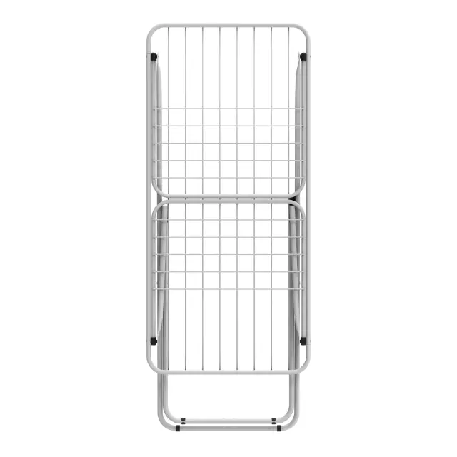 Preprosto, praktično in prilagodljivo sušilno stojalo s stranskimi krili, ki ponujajo dodaten prostor za sušenje različnih vrst oblačil. Opremljeno je z vzdržljivimi sušilnimi vrvmi s skupno dolžino 18 m, kar omogoča obešanje velike količine perila hkrati. Stabilna konstrukcija z merami 50×181×92 cm in cevmi premera 16 mm daje trden in dolgotrajen vtis. Model Tony vključuje stabilen zapiralni mehanizem, ki poveča varnost, saj med uporabo drži noge trdno v odprtem položaju. Kljub stabilnosti Tony tehta le 2 kg, zato je lahek, enostaven za prenašanje ter preprost za zlaganje in odpiranje glede na potrebe. Učinkovita in priročna rešitev za vsakodnevno sušenje perila.