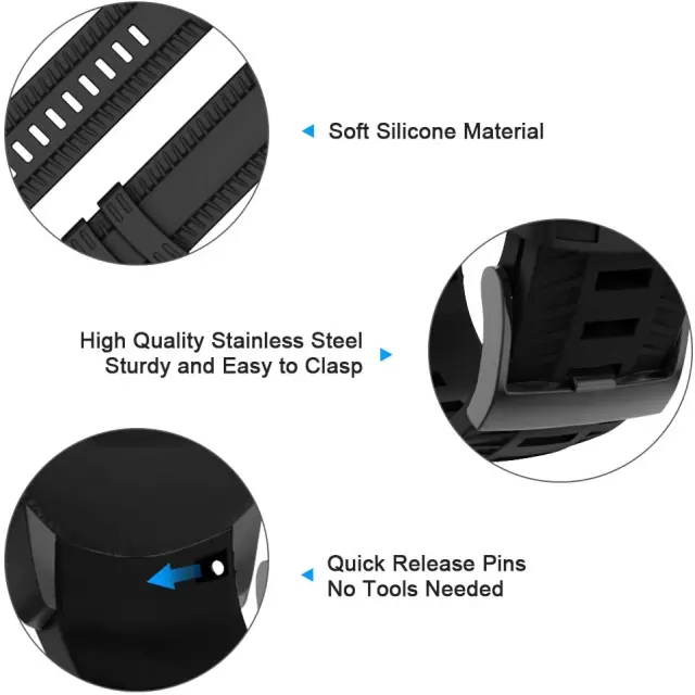 Športen in eleganten pas za uro: ta športni pas je izdelan iz visokokakovostnega mehkega in vodoodpornega silikona in ima zaponko iz nerjavečega jekla. Enostavna zamenjava, dolžina pa je nastavljiva.