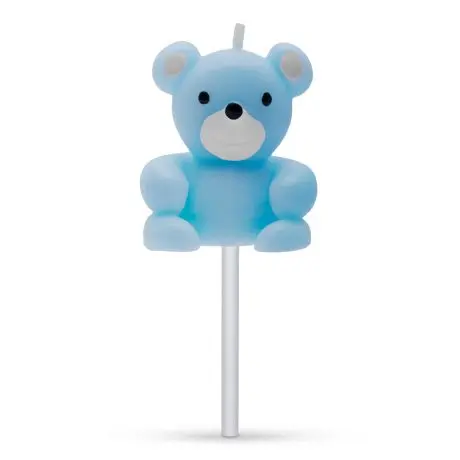 Prikupna svečka za na torto v obliki medvedka v modri barvi.