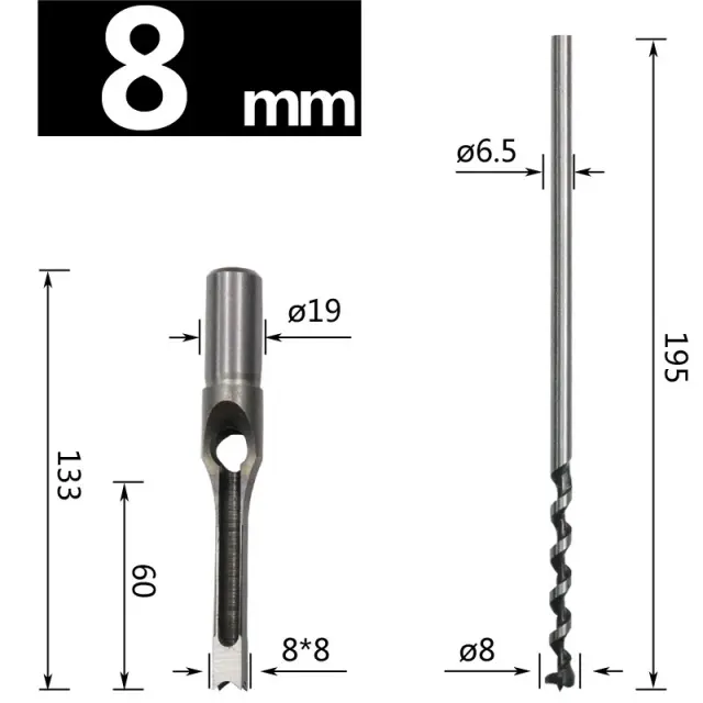 Vsestranska obdelava lesa: Popolna za različne namene obdelave lesa, vključno z, a ne omejeno na, ustvarjanjem kvadratnih lukenj za zareze, narezovanje navojev, zarezovanje in drugo. Združljiv je s svedri, stebrnimi svedri in drugimi rotacijskimi orodji.