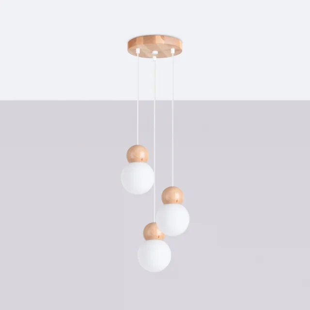 Svetilka colgante PEKKA 3P bela/madera naravno