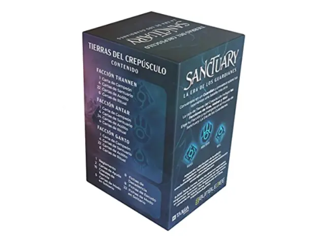 Sanctuary: The Age of the Guardians je hitra igra s kartami za upravljanje kompleta za 1-2 igralca. V temačnem domišljijskem svetu Elnerth smo v času vojne in čudežev: doba varuhov. Varuhi se trudijo ohraniti svoje esence, energije prednikov, ki jih lahko kanalizirajo in obvladujejo skozi svetišča. Ste eden od varuhov in vaš cilj je prevladati nad drugimi tako, da prikličete svojo vojsko pomočnikov in uničite njihova svetišča. Izberite eno od šestih edinstvenih frakcij in poiščite svojega legendarnega prvaka, izbranega med najbolj zvestimi in nadarjenimi bhaktami. Pridružite se boju in izpolnite svojo usodo: kdo bo zadnji obstal? V Sanctuary so štiri vrste kart: Acollite, Champion, Ritual in Sanctuary. Akoliti so vojaki in bitja, ki jih pokličete na bojišče, da napadejo in branijo svetišča. Mnogi med njimi imajo tudi posebna znanja. Prvaki so najmočnejši liki v vsaki frakciji. Rituali lahko povzročijo neposredno škodo, prekinejo sovražnikovo formacijo ali omogočijo strateške manevre. Svetišča so vmesne točke za kanalizirano energijo. Ko dosežejo minimalno dekadence, njihove moči vplivajo na celotno bojišče. Uničenje vseh sovražnikovih svetišč je zmagovalni pogoj igre. Vaš komplet je igra kart, ki ste jo izbrali za soočenje z nasprotnikom. Veljaven komplet mora vsebovati natanko 28 kart med Spremljevalci in Rituali ter 1 prvaka, ki ostane izven kompleta. Igrate lahko s standardnim krovom frakcij, ki ga sestavljajo le karte določenih frakcij, ali pa sestavite komplet z vsemi kartami v svoji zbirki. V prvem primeru razmislite o omejitvi največ 2 kopij vsake kartice. V zadnjem primeru lahko izberete samo eno kopijo vsake karte.