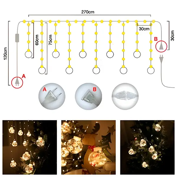 Več kosov dekoracije s svetlečimi kroglicami z različnimi motivi lahko med seboj povežete in ustvarite 12-metrsko verigo, ki se napaja iz ene vtičnice!