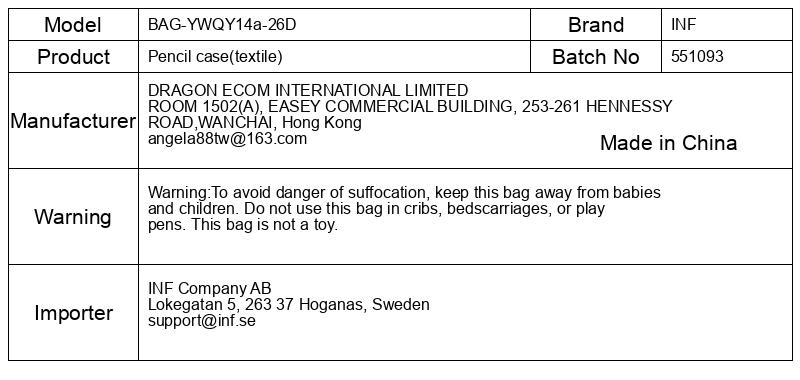 Opozorilo: Da bi se izognili nevarnosti zadušitve, vrečko hranite izven dosega dojenčkov in otrok. Vrečke ne uporabljajte v otroških posteljicah, vozičkih za spanje ali igralih. Ta vreča ni igrača.