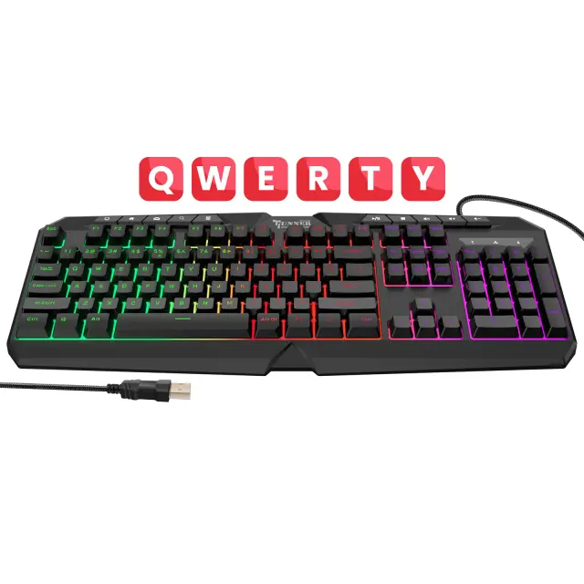 Swissten Gunner RGB osvetljena gamerska tipkovnica z vgrajenim vhodom USB. Visoko osvetljene tipke za odlično vidljivost ponoči. 19 tipk proti duhovom za igranje brez zakasnitev in konfliktov pri upravljanju. 10 praktičnih multimedijskih gumbov za upravljanje zvoka in predvajanja.