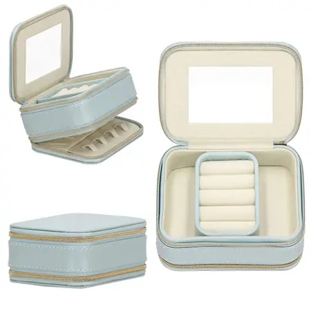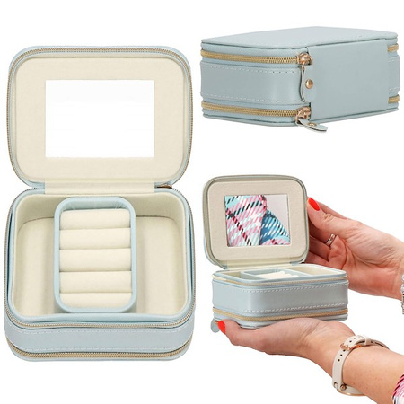 Nakit je brezčasen okras, ki nikoli ne gre iz mode, tako kot ure: praktičen in funkcionalen dodatek k vaši obleki. Če zbirate ogrlice, zapestnice in drug dragocen nakit, ga shranite v škatlo za nakit. Tista, ki jo ponuja kovček, bo kot nalašč za ta namen. Vanj lahko spravite veliko dragocenih kosov in ne bo vam treba skrbeti, da bi se nekega dne kaj izgubilo. Škatla je dimenzij 11,5x8,5x5,5 cm, zato ne zavzame veliko prostora. Hkrati je njegova konstrukcija dobro premišljena, zahvaljujoč vložkom s predelki lahko z lahkoto organizirate svoj nakit. V vložek, podložen z blagom, lahko namestite prstane. V škatlo lahko shranite ogrlice, zapestnice, broške, perle, sestavne dele nakita in gumbe. Naša škatla za nakit: Pomagala vam bo organizirati vaš nakit, da boste zlahka našli dodatke, ki jih potrebujete. Zapira se z zadrgo, kar poveča varnost shranjevanja. Izdelan je iz žameta, zato je popoln za shranjevanje občutljivega nakita. Parametri: Znamka: Springos Material: eko usnje, žamet Zunanja barva: modra Notranja barva: krem Velikost zaprte škatle: približno 11,5 x 8,5 x 5,5 cm Zapiranje: zlata okrasna zadrga Dodatno: notranjost ogledala Notranjost: Najmanjši predal: 4 držala za ogrlice 11,5x4 cm žep z vrvico 4 predelki za uhane in prstane dolžine 4,5 cm Glavni predal: Da v sredini globokega predala je vložek za uhane, ob straneh sta 2 prekata 2,5x7 cm. Če odstranite vložek za uhane in prstane, dobite glavni predal 10,5x7 cm in globino 2 cm : HA1035