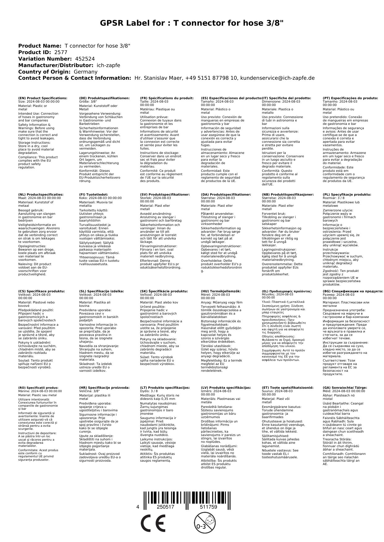T-oblikovan priključek za cevi s premerom 3/8 palca je optimalna rešitev za vse cevi z zunanjim premerom 3/8 palca. Posebej zasnovan za potrebe v gostinstvu in barih z profesionalnimi napravami za črpanje piva, ta priključek omogoča enostavno namestitev, ki hitro in varno poveže cevne priključke.