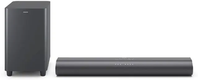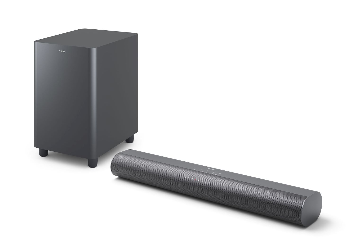 Potopite se v akcijo s polnim, bogatim zvokom iz elegantnega in kompaktnega soundbara, ki se bo odlično podal v vaš dom. Slišali boste vsak trenutek vznemirljivega dogajanja – tako v glasbi in dramatičnih filmih kot hitrih športnih sekvencah.