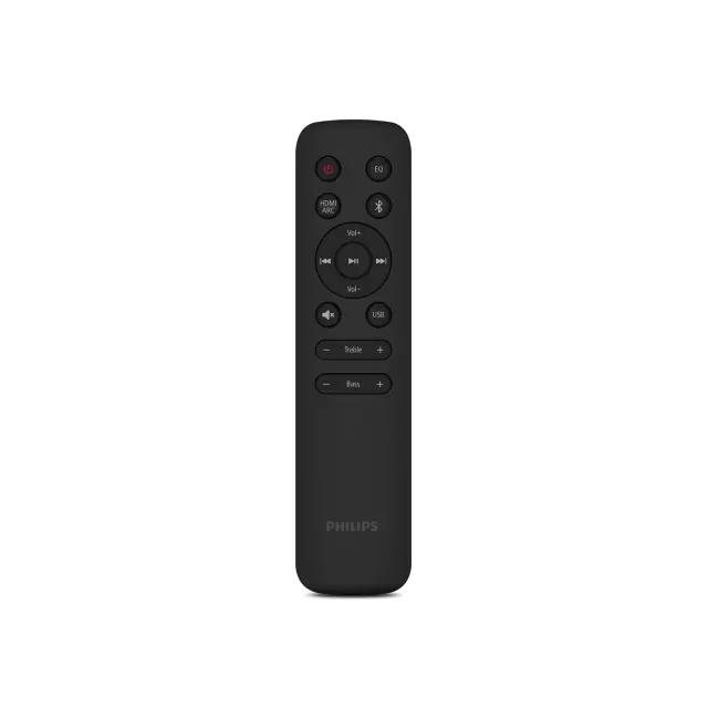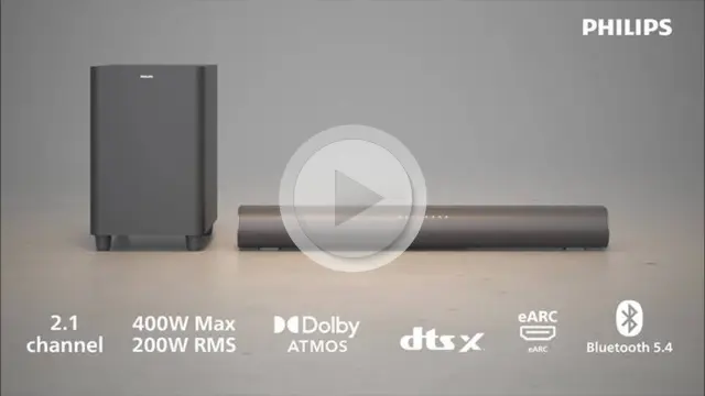 Ta bogato opremljen soundbar ima vhod HDMI-eARC za brezhibno sinhronizacijo zvoka iz televizorja brez nepotrebnih kablov. Zvok lahko povežete tudi prek vhoda USB ter avdio in optičnega vhoda.