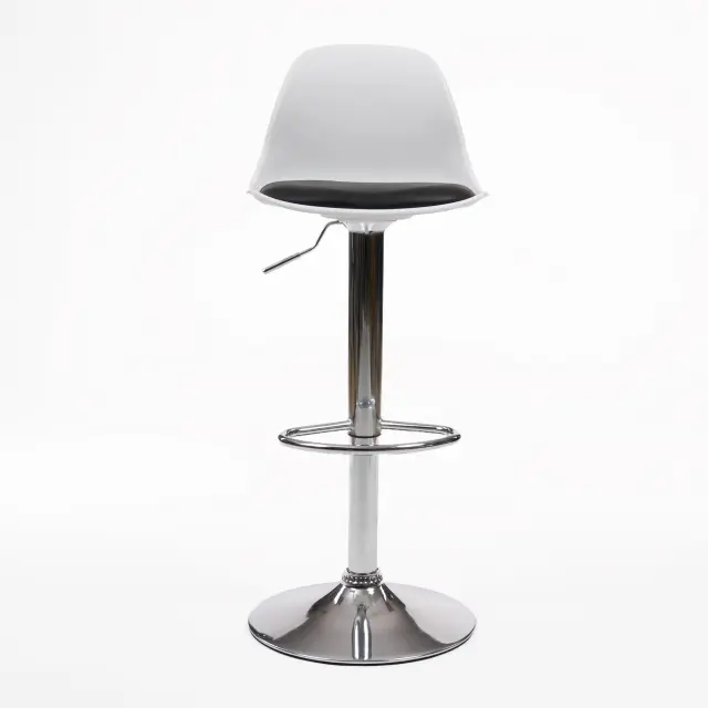 Odličen stol s sodobno zasnovo ter zelo čistimi in elegantnimi linijami, ki se bo ujemal z vsakim dekorjem in ambientom, tako doma kot na delovnem mestu. Visokokakovostno telo iz polipropilena je izdelano iz enega kosa, sedež pa je oblazinjen z barvnim umetnim usnjem, ki ustvarja lep kontrast in uporabniku zagotavlja največje udobje. Robustno kromirano jekleno podnožje zagotavlja veliko stabilnost in je zasnovano s plinskim dvižnim mehanizmom, ki omogoča nastavitev višine glede na potrebe posameznika. Za večje udobje in priročnost ima vgrajeno tudi kromirano jekleno podnožje. Vključuje nedrseče čepke na nogah. Enostaven za čiščenje in vzdrževanje.