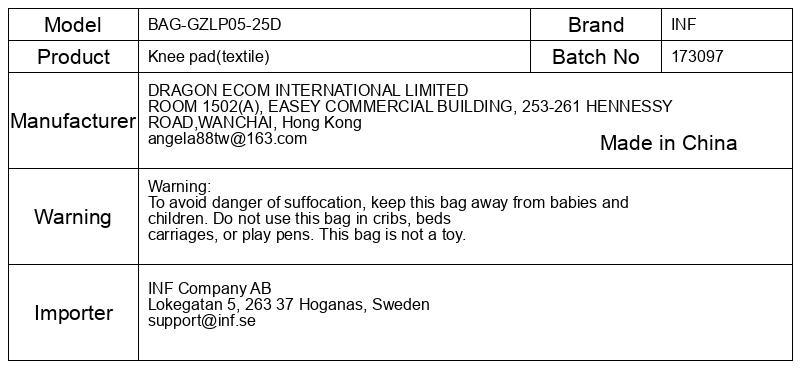 Opozorilo: Da bi se izognili nevarnosti zadušitve, vrečko hranite izven dosega dojenčkov in otrok. Vrečke ne uporabljajte v otroških posteljicah, vozičkih ali igralih. Ta vreča ni igrača.