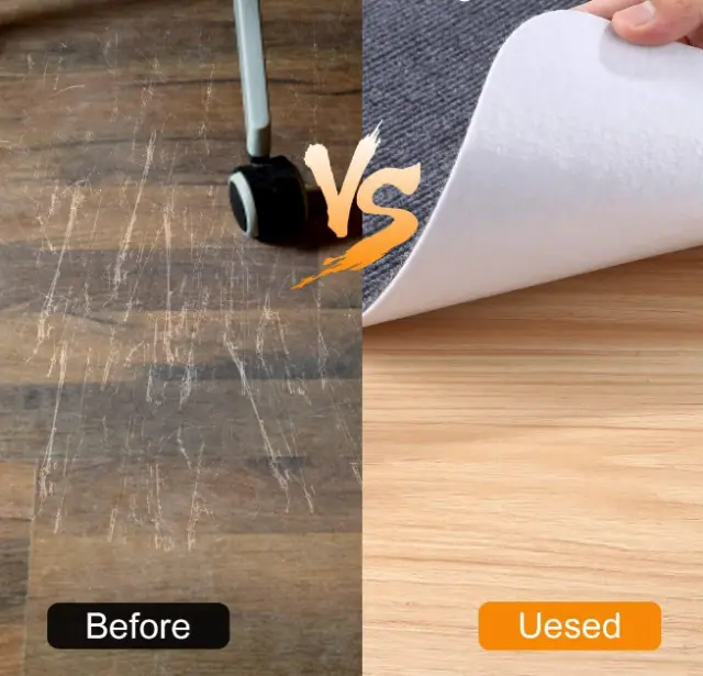 Podloge za blaženje udarcev: Ščitnik za tla je narejen iz mehkega materiala, ki zagotavlja oblazinjenje vaših nog in izolacijo pred hladnimi tlemi. Podloga preprečuje grde praske in sledi pisarniškega ali igralnega stola.