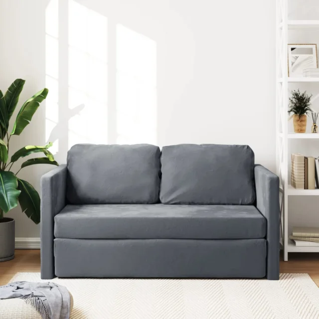 Talni Raztegljiv kavč - Raztegljivi divan 2 v 1 temno siv 122x204x55 cm žamet