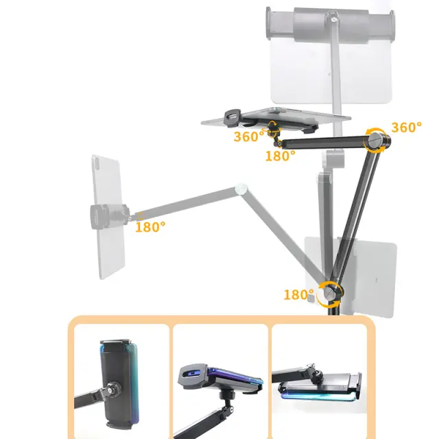 Trdno in stabilno: izdelano iz kombinacije ABS, železa, aluminijeve zlitine in PC materialov, je stojalo izdelano tako, da traja. Trpežna podlaga zagotavlja odlično stabilnost in preprečuje prevračanje, tudi ko je popolnoma raztegnjena. To zagotavlja, da vaša naprava ostane varna in stabilna tudi med dolgotrajno uporabo.