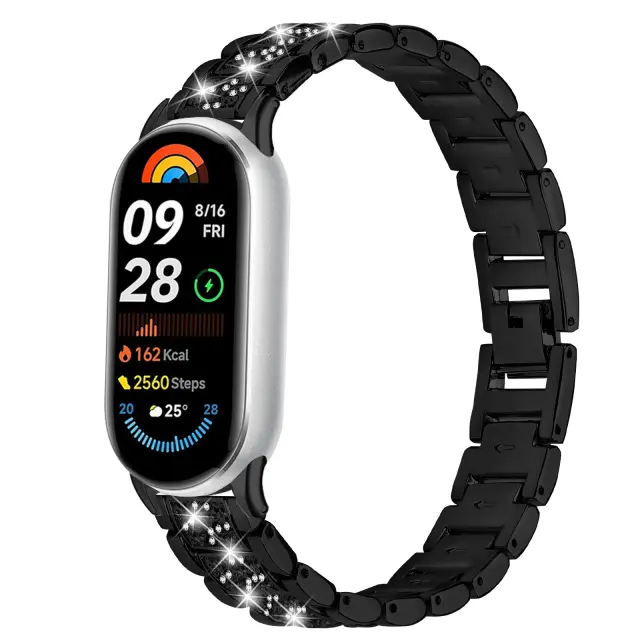 Tanek diamantni zapestni pas, združljiv z Xiaomi Mi Band 8/9/10 - nerjaveče jeklo Black