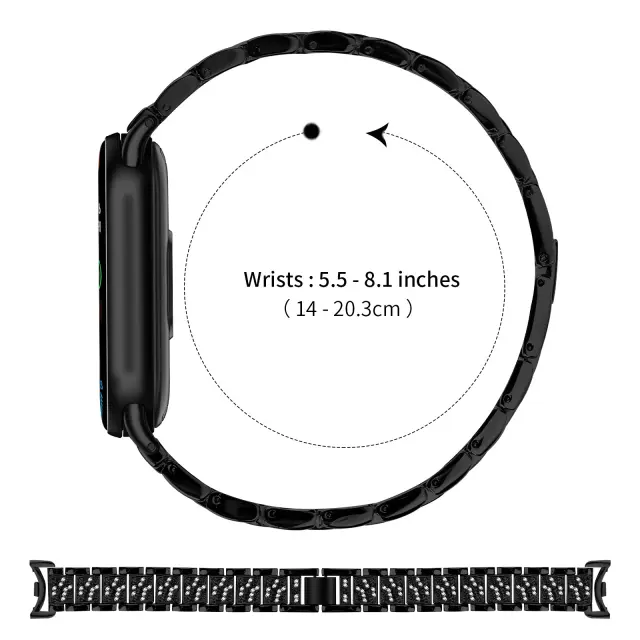 Eleganten diamantni dizajn: Povzdignite svoj Xiaomi Mi Band 8, 9 ali 10 s tem izvrstnim tankim diamantnim zapestnim pasom. Bleščeči diamantni poudarki dodajo pridih razkošja in prefinjenosti, s čimer vaš fitnes sledilnik spremenijo v eleganten dodatek, primeren za vsako priložnost. Ta pas je popoln za tiste, ki želijo združiti funkcionalnost z visoko modo, kar zagotavlja, da izstopate iz množice. Zapletene podrobnosti in bleščeči kamni lepo lovijo svetlobo, zaradi česar je osupljiv dodatek k vaši vsakdanji nošnji. Uživajte v popolni mešanici tehnologije in elegance s tem edinstvenim pasom, posutim z diamanti.