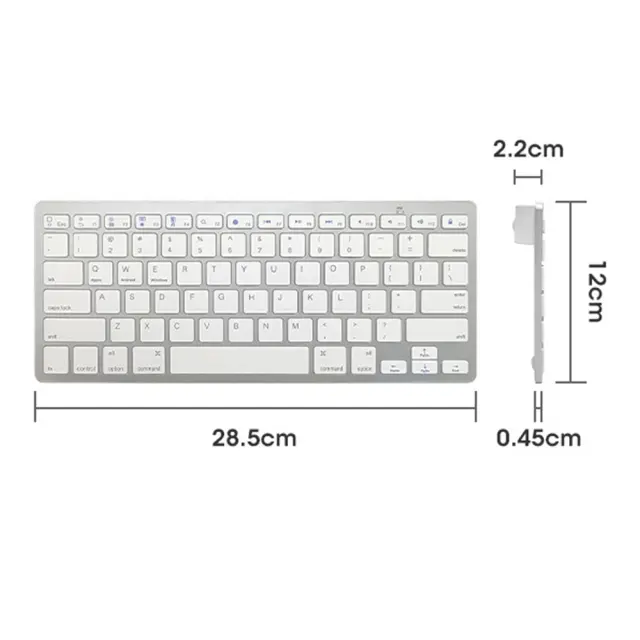 Ultra-tanka in prenosna: Izkusite neprimerljivo prenosljivost s to ultra-tanko Bluetooth tipkovnico. S samo 4,5 mm na najtanjši točki je ta tipkovnica zasnovana za produktivnost na poti. Zaradi svoje kompaktne velikosti jo je enostavno pospraviti v torbo ali aktovko, kar vam omogoča delo ali igro od kjer koli. Popolna za študente, strokovnjake in vse, ki potrebujejo tipkovnico, ki jih ne bo obremenjevala. Uživajte v svobodi tipkanja na tipkovnici polne velikosti brez nepotrebne teže. Ta tipkovnica je združljiva s široko paleto naprav, vključno s tablicami, pametnimi telefoni in prenosniki, zaradi česar je vsestranski dodatek k vaši tehnični opremi. Elegantna oblika dopolnjuje katero koli napravo in dodaja pridih prefinjenosti vaši mobilni postavitvi.