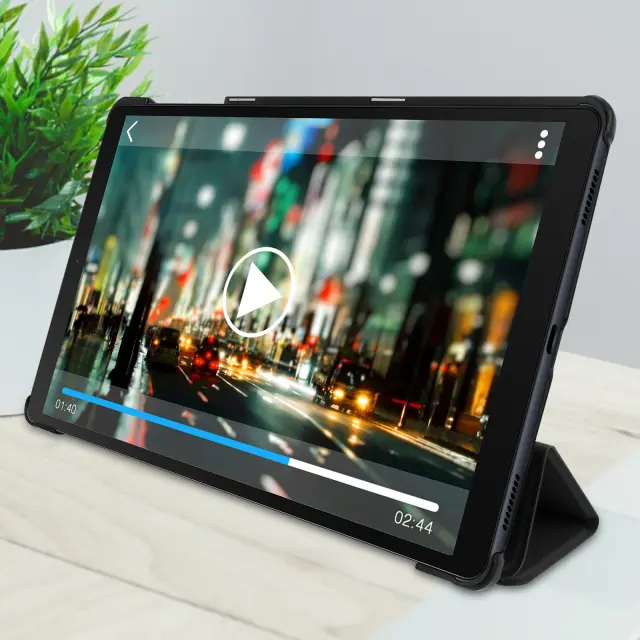 Ta trojni ovitek popolnoma zašciti vaš Samsung Galaxy Tab A 10.1 2019, hkrati pa vam nudi optimalno udobje pri rokovanju z vašo tablico. Loputa se spremeni v oporo in ponuja video nacin ali nacin tipkovnice.