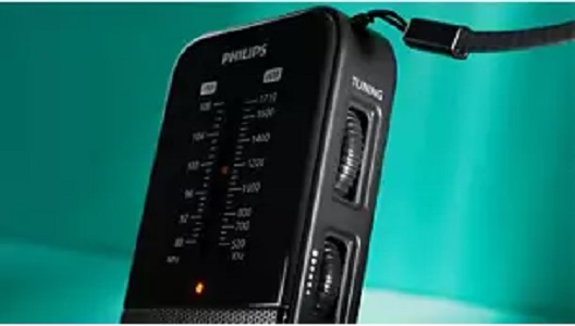 Ta analogni radio je dovolj majhen, da ga lahko spravite v žep ali s priloženim paščkom obesite na zapestje. Zvok napajata 2 bateriji AAA, medtem ko vam vhod za slušalke omogoča zasebno poslušanje, kar je popolno, če poslušate najnovejše športne rezultate, medtem ko nakupujete.